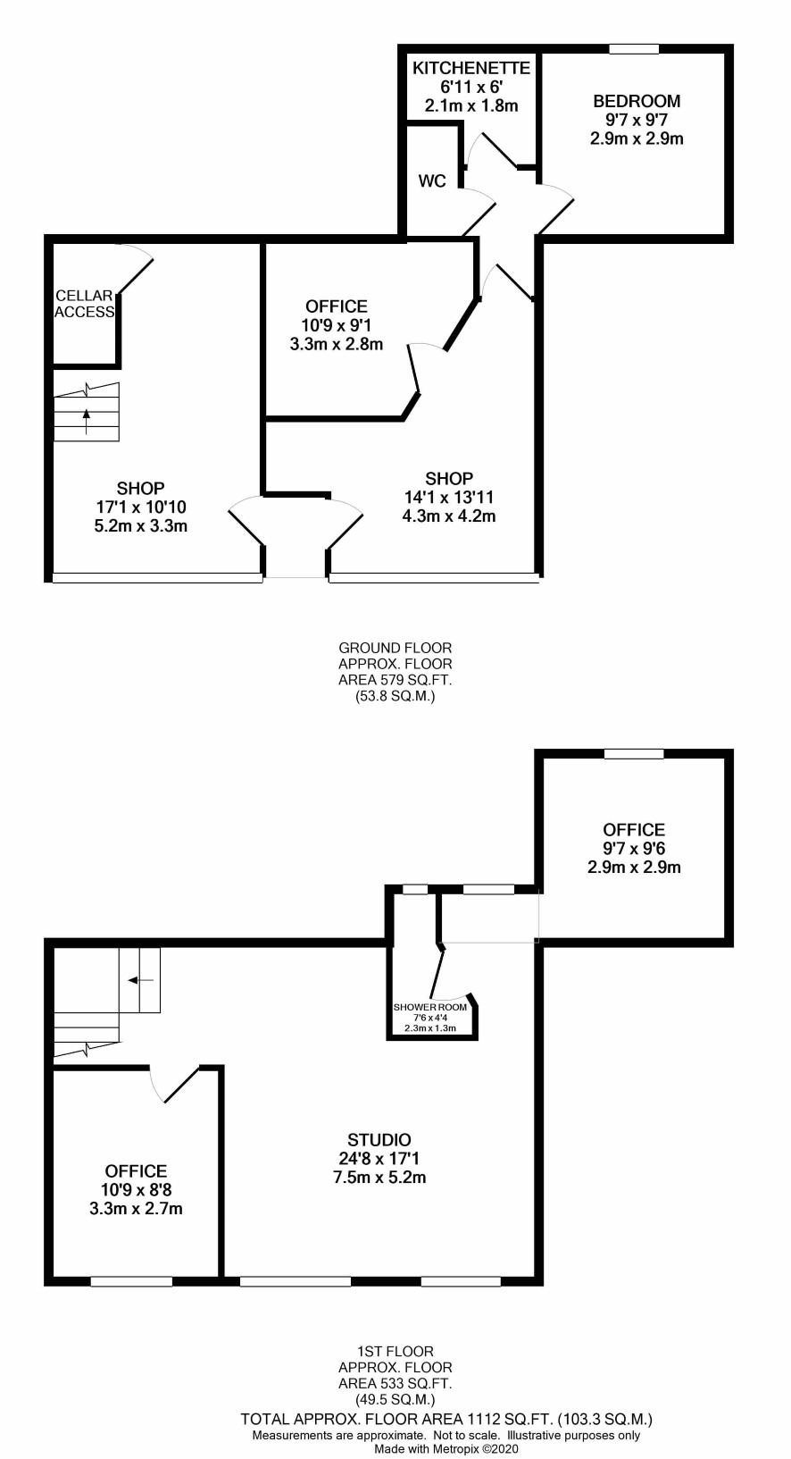 Shop 1 with one bedroom living accommodation Shop 2 with access to first floor offices or flat