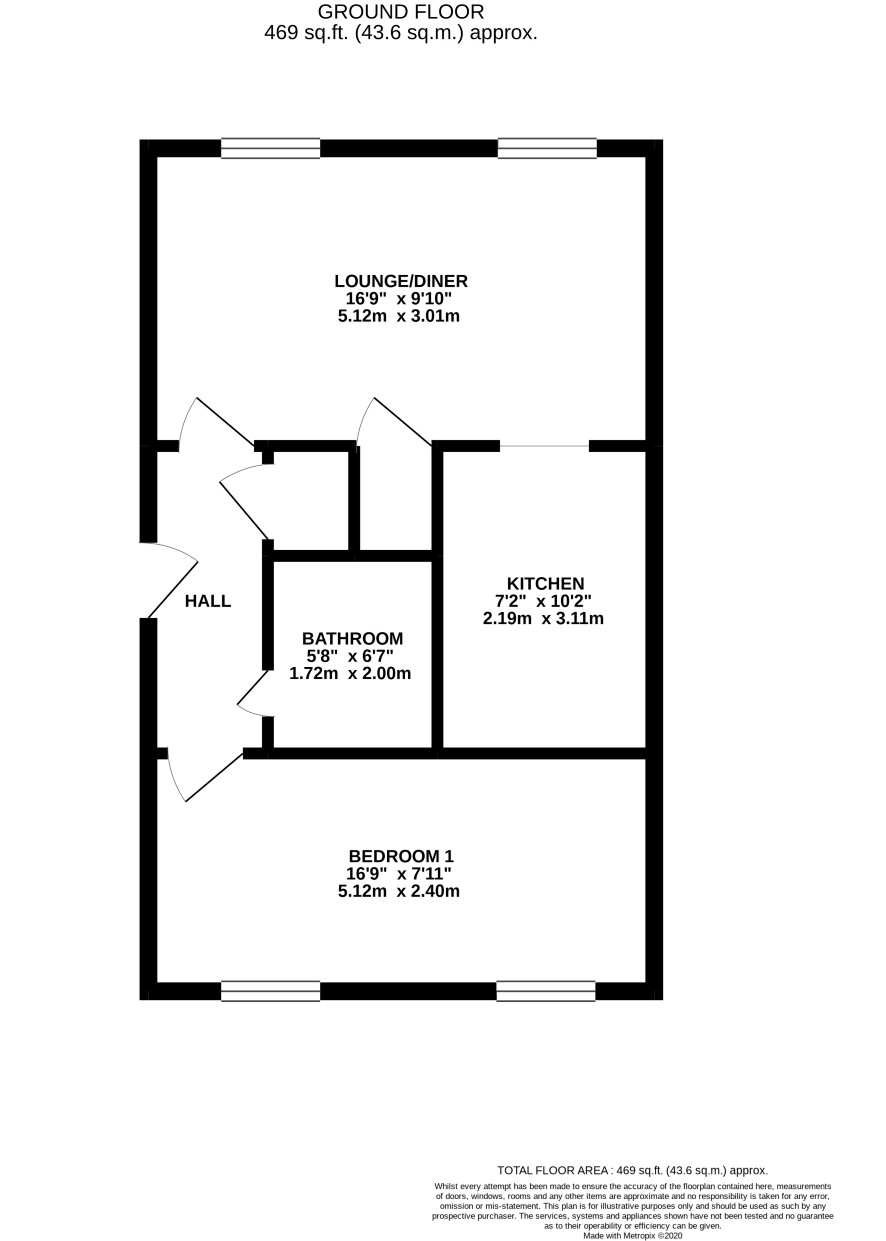 Door to private hall, lounge/diner, kitchen, double bedroom, bathroom