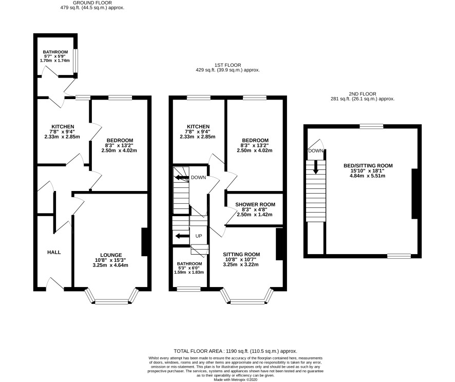 Flat 2: Lounge, bedroom, kitchen, bathroom Flat 3: Bathroom