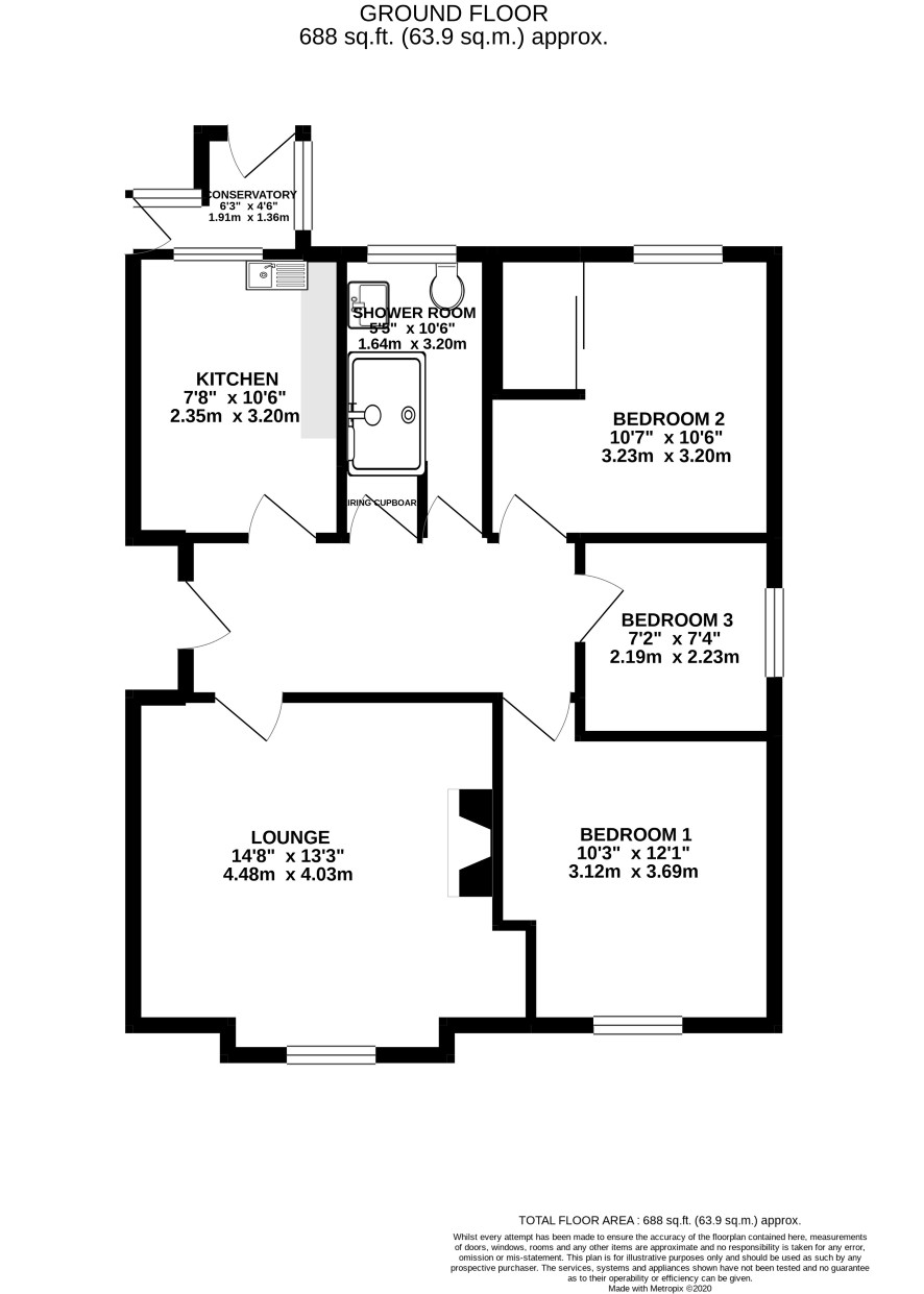 Hall, lounge, kitchen, 3 bedrooms, shower room