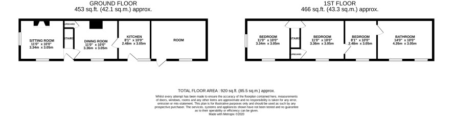 Attached house comprising kitchen, dining room and sitting room on the ground floor and three bedrooms and bathroom on the first floor. Outside there is an attached lean to. Requires refurbishment.