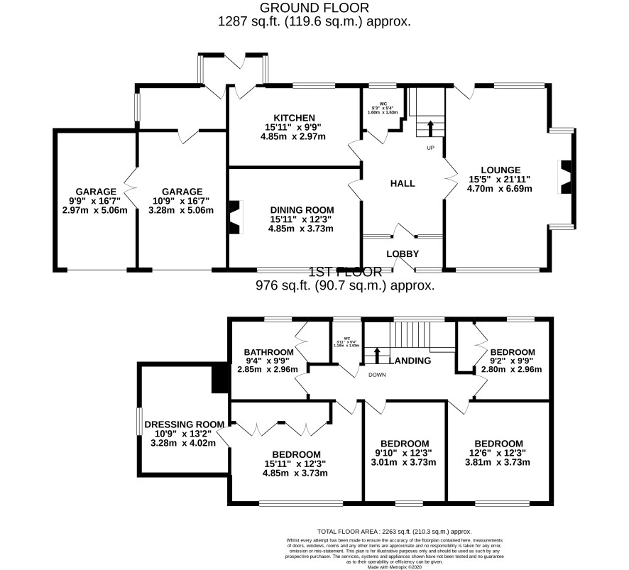 Broad front garden with driveway access to double garage, Fully walled rear garden with lawns and mature weeping willow tree