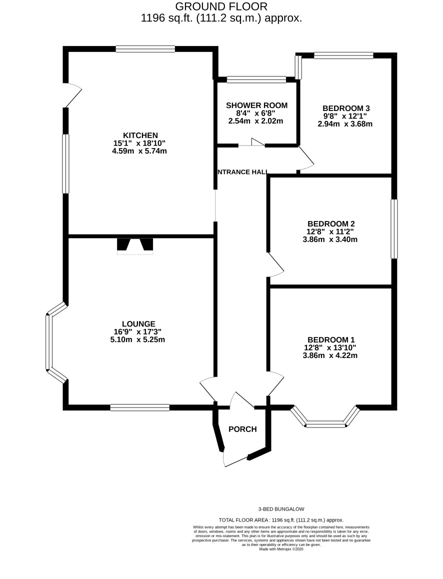 Ground floor: porch, entrance hall, lounge, three bedrooms, kitchen, wet room Outside: Off road parking to front, front garden, large rear garden, garage / outbuilding, greenhouse