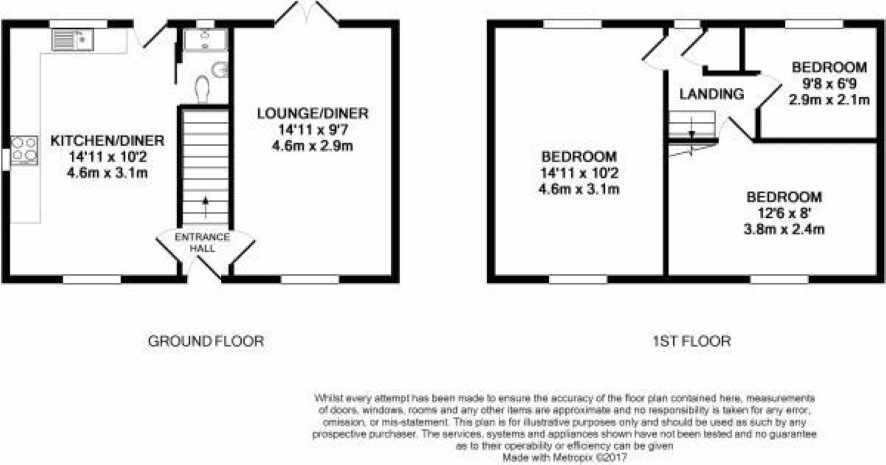 Ground floor: entrance hall, kitchen / dining room, shower room and wc, lounge First floor: landing, three bedrooms Outside: off road parking to front, front garden, large rear garden, modern timber outbuilding / workshop