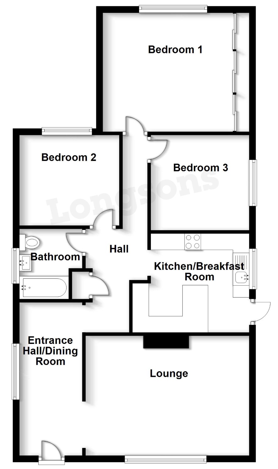 Entrance hall, lounge, kitchen/ breakfast room, three bedrooms and bathroom
