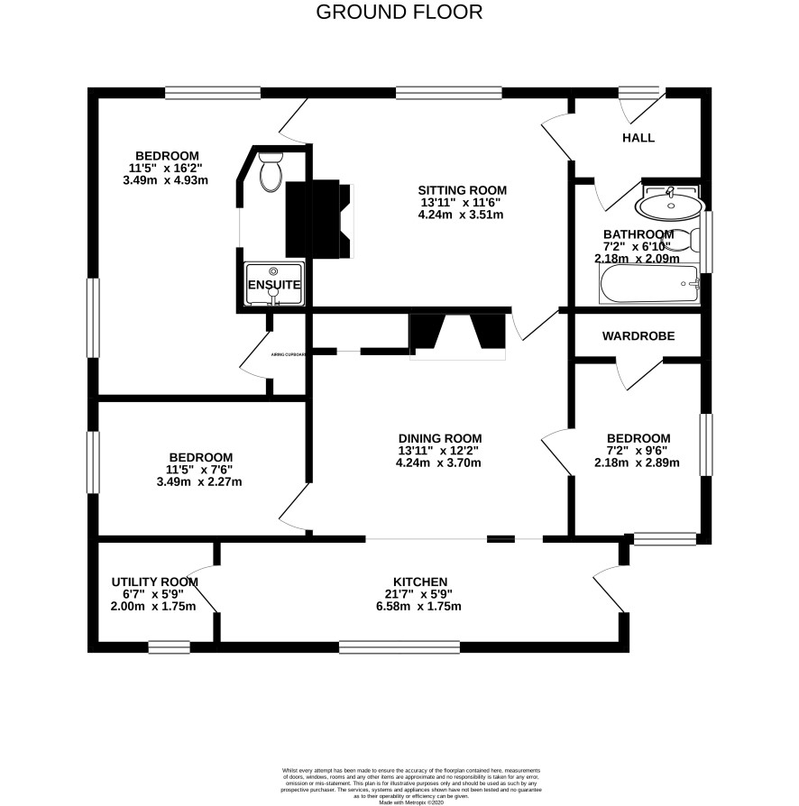 Hall lounge, dining room, kitchen, utility, master bedroom with en-suite, two further bedrooms, bathroom