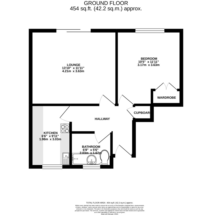 Entrance hall, bathroom, lounge, bedroom, kitchen, cupboard Outside: Private rear garden, communal front garden