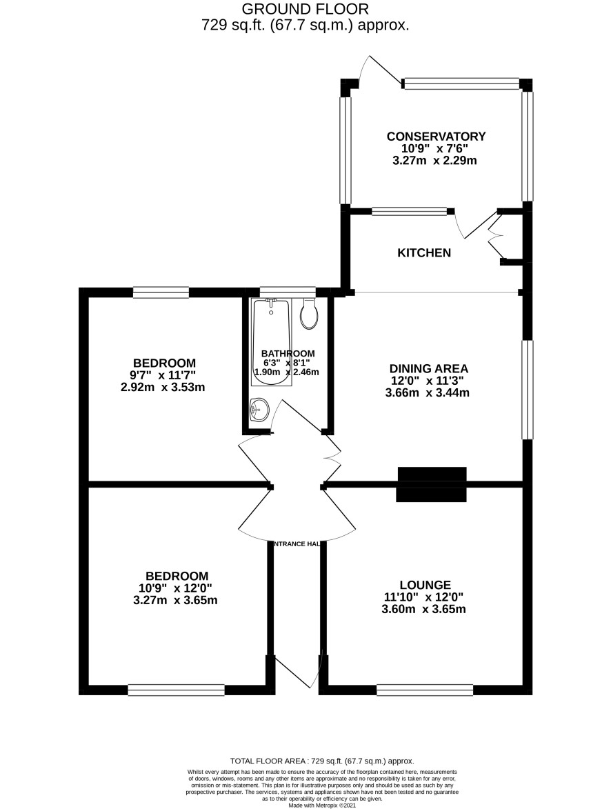 Hall, lounge, kitchen/diner, conservatory, two bedrooms, bathroom