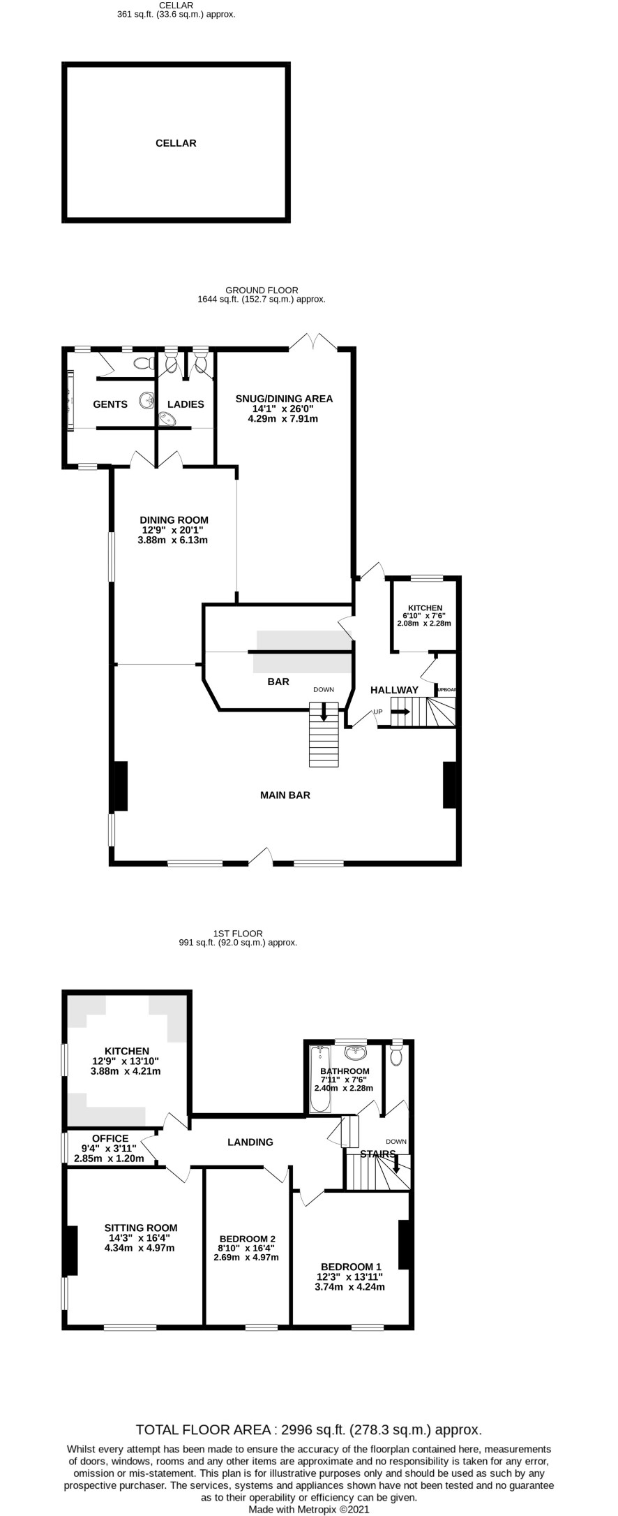 Bar, dining area, snug, ladies and gents toilets, inner hall, kitchen, cellar, stairs to first floor flat