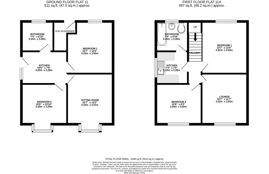Gates open onto the side of the property which is used for entrance to flat 11 (ground floor) and provides a garden area. To the rear of the property there is an enclosed rear garden which provides access to flat 11a (first floor). This garden is communal, laid to lawn and provides washing lines for both flats.