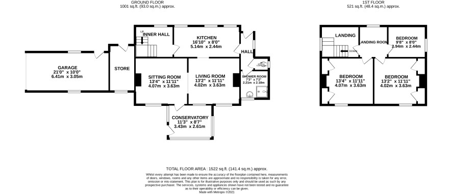 Hall, living room, sitting room, kitchen, conservatory, shower room, separate w.c, inner hall with stairs to first floor