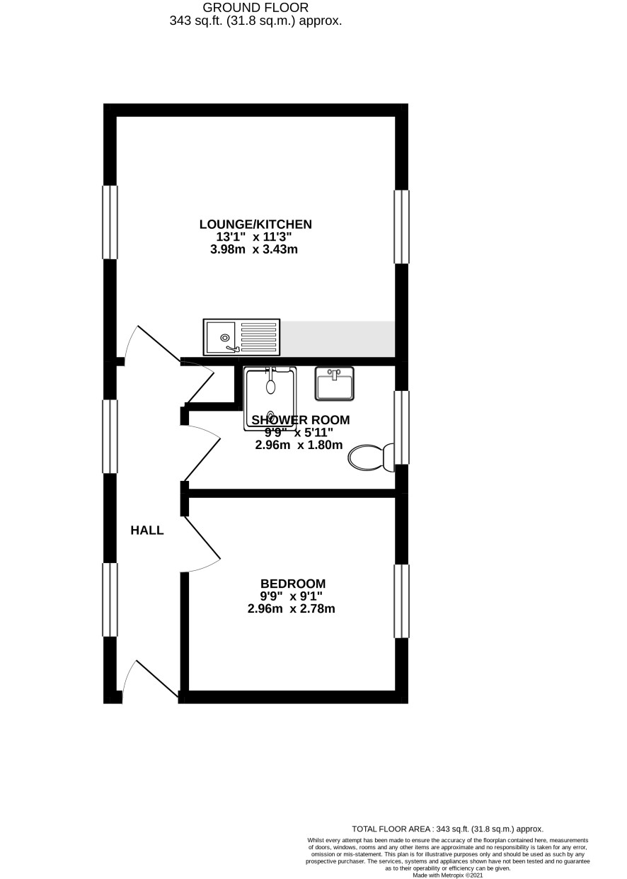 Communal hall, hall, lounge/kitchen, bedroom, bathroom