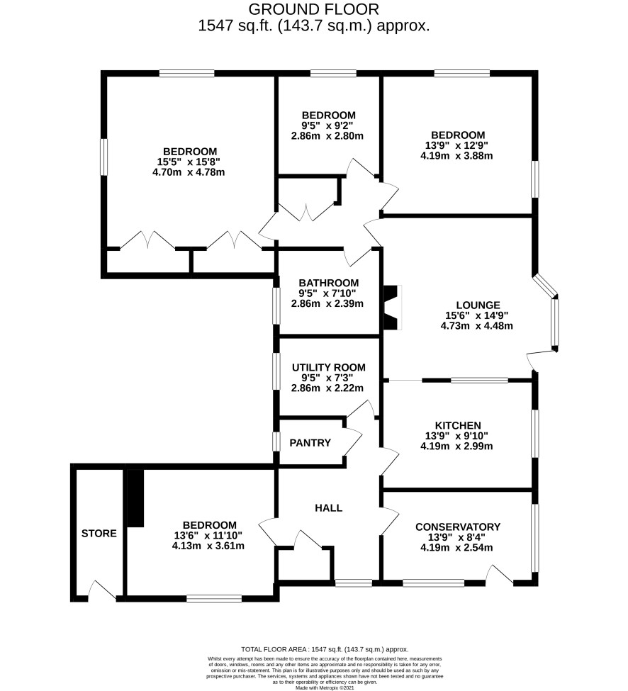 Hall, lounge, kitchen, dining room/bedroom 4, inner hall, three double bedrooms, bathroom, cloakroom.