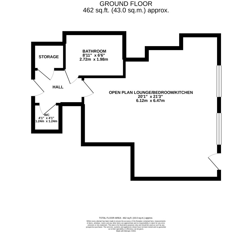 A self contained freehold ground floor studio offered with vacant possession with a garden to front and a potential income of £5,400 pa