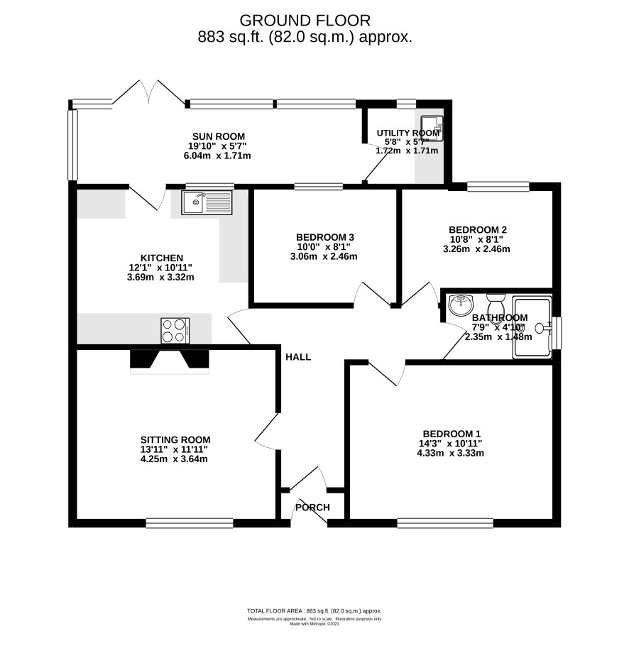 Porch, hall, sitting room, kitchen, garden room, utility room, three bedrooms, family bathroom.