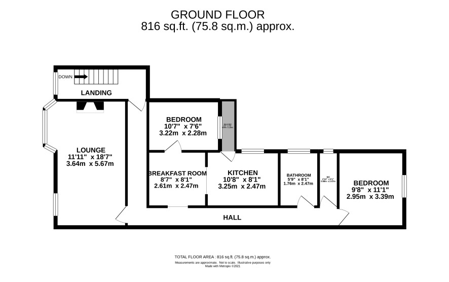 Shared entrance and staircase to first floor landing, private entrance hall, lounge, kitchen, two bedrooms, bathroom, separate wc.