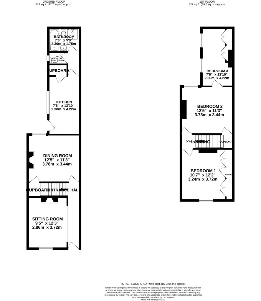 Landing, two generous bedrooms with third bedroom leading off.