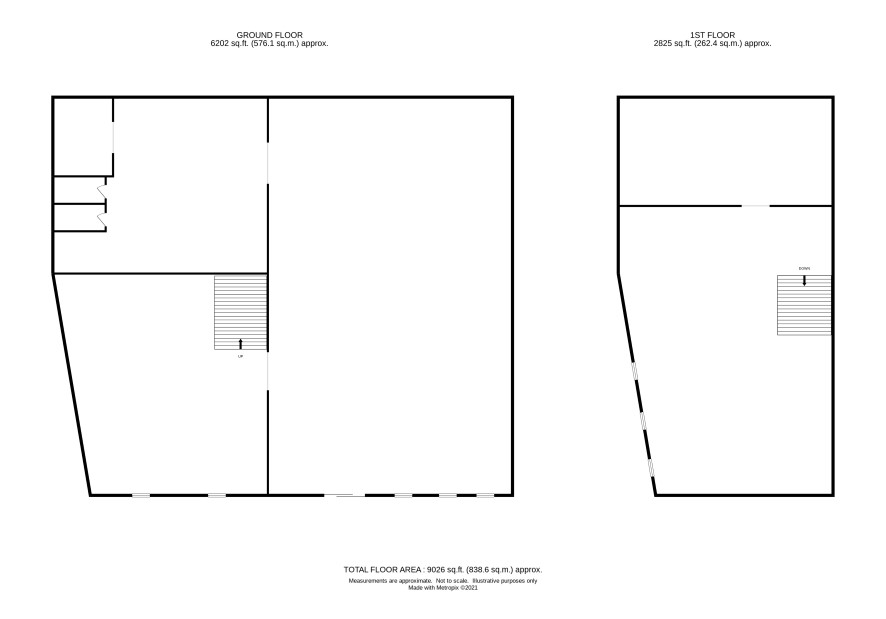 Main open plan room, front room, store room, 2 x W/Cs and additional store rooms.