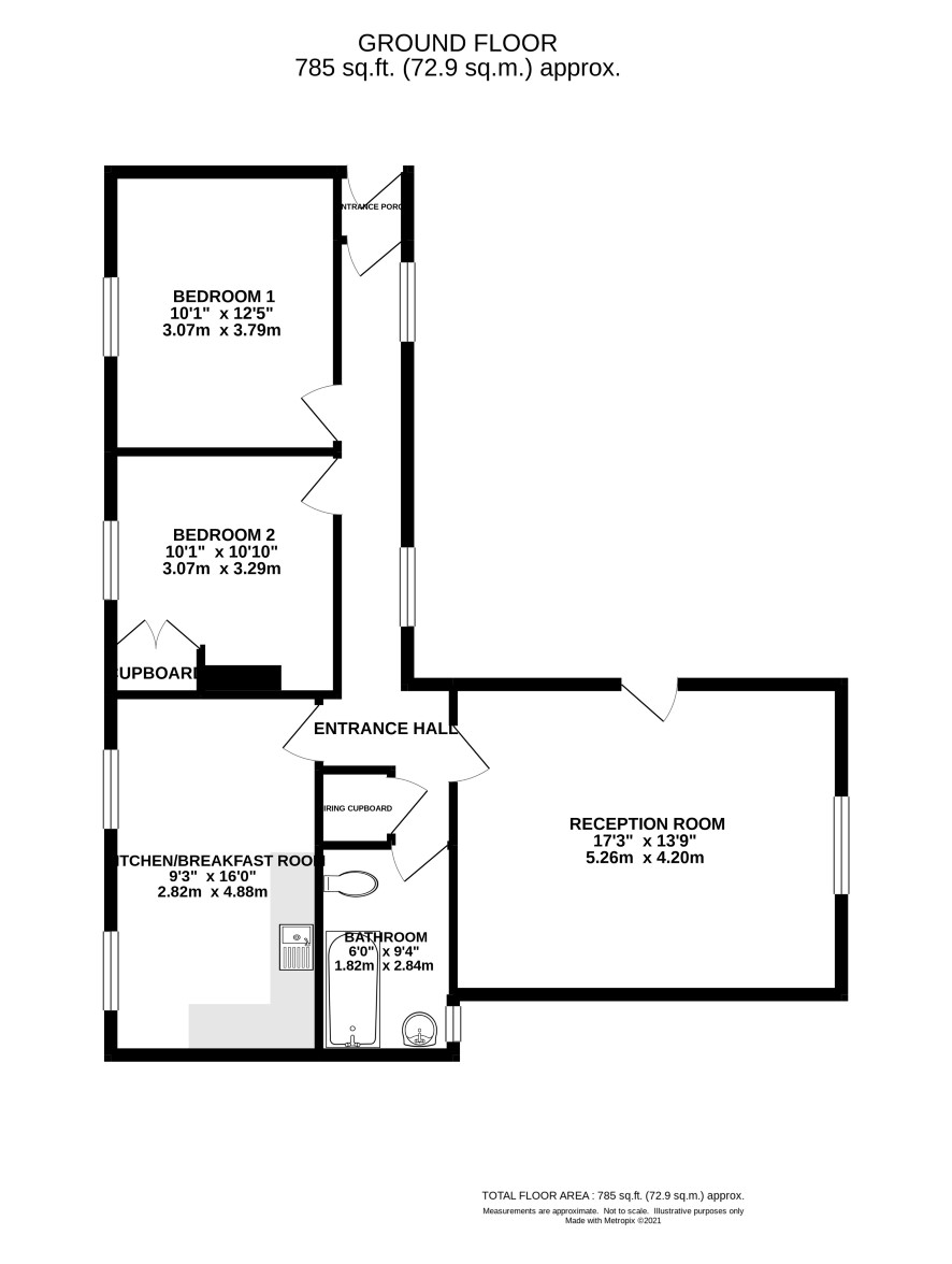 Communal hall, entrance hall, sitting room, kitchen/diner, two double bedrooms, bathroom