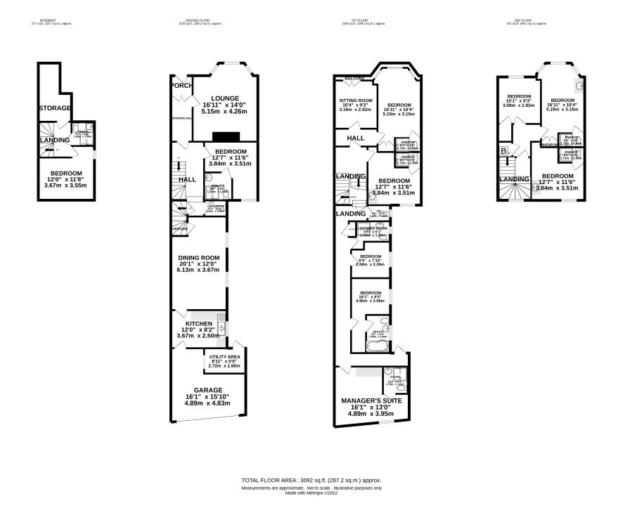Landing, double bedroom, shower room, double bedroom with en-suite bathroom. Large double bedroom with en-suite and kitchenette ideal for live in manager. Fire exit off landing