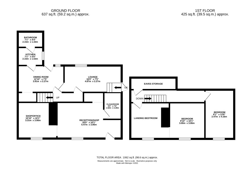 106 High Street: Shop/Office comprising two rooms (320 sq ft), cloakroom 106A High Street: Living room, kitchen, bathroom 2 bedrooms