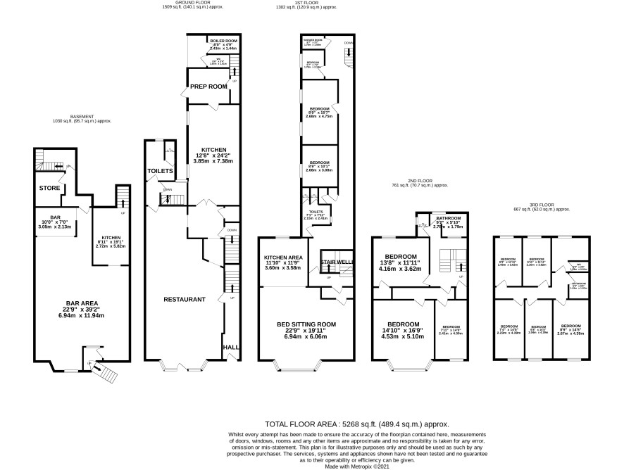 Main restaurant, kitchen, prep room, customer toilets, rear open store, boiler room, staff toilet courtyard area