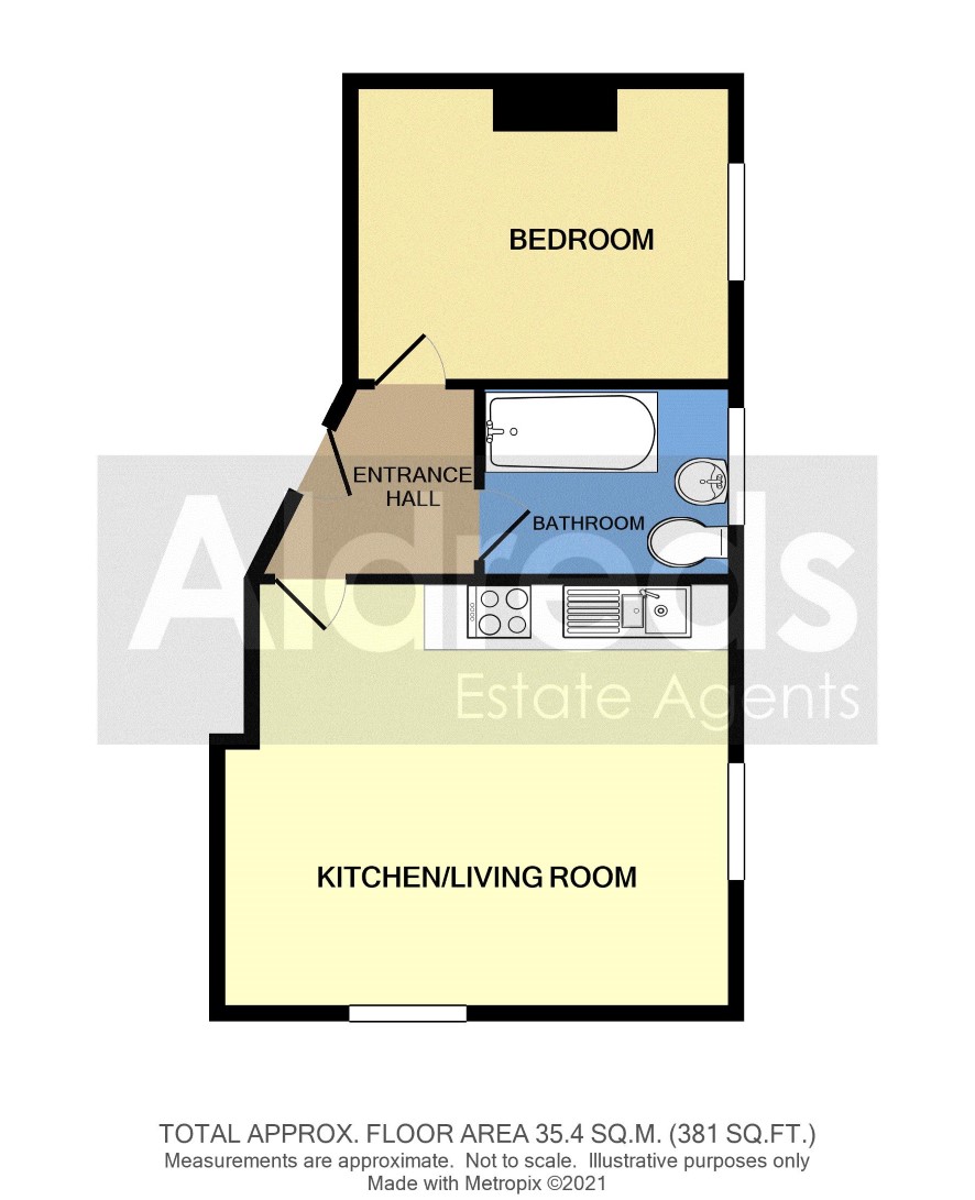 Entrance hall, open plan kitchen/living room, bedroom, bathroom