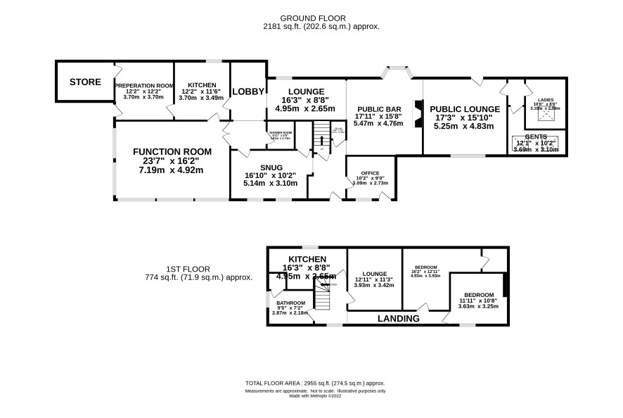 Public Bar, lounge bar, snug, kitchen, store, office, ladies and gents toilets, shower room