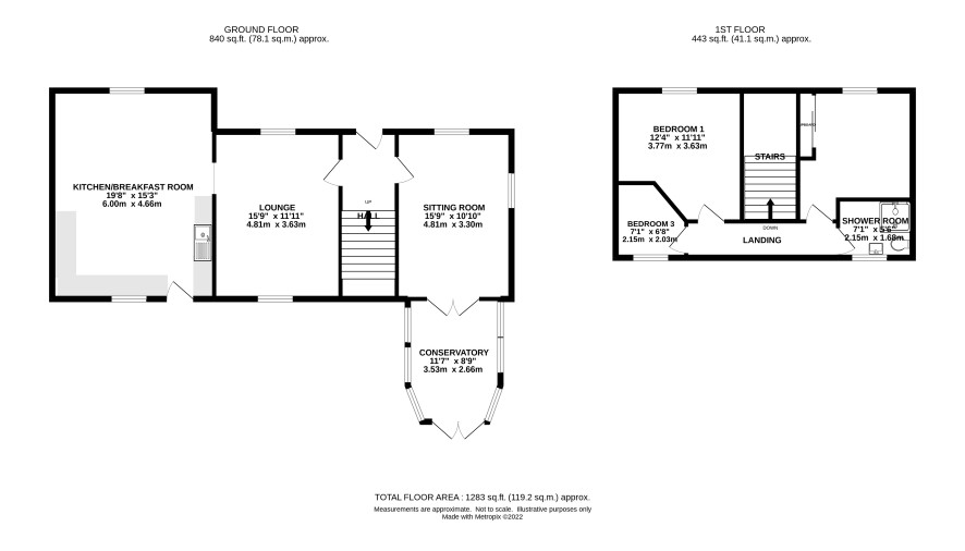 Three bedrooms and a shower room.