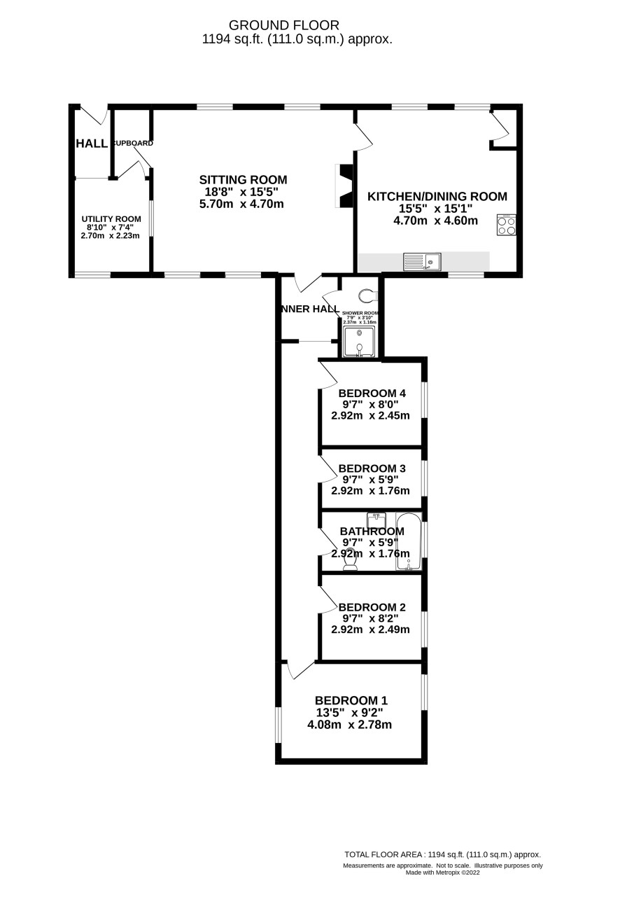Hall, Utility Room, Kitchen/Dining Room, Sitting Room, Four Bedrooms Bathroom and a Shower Room.