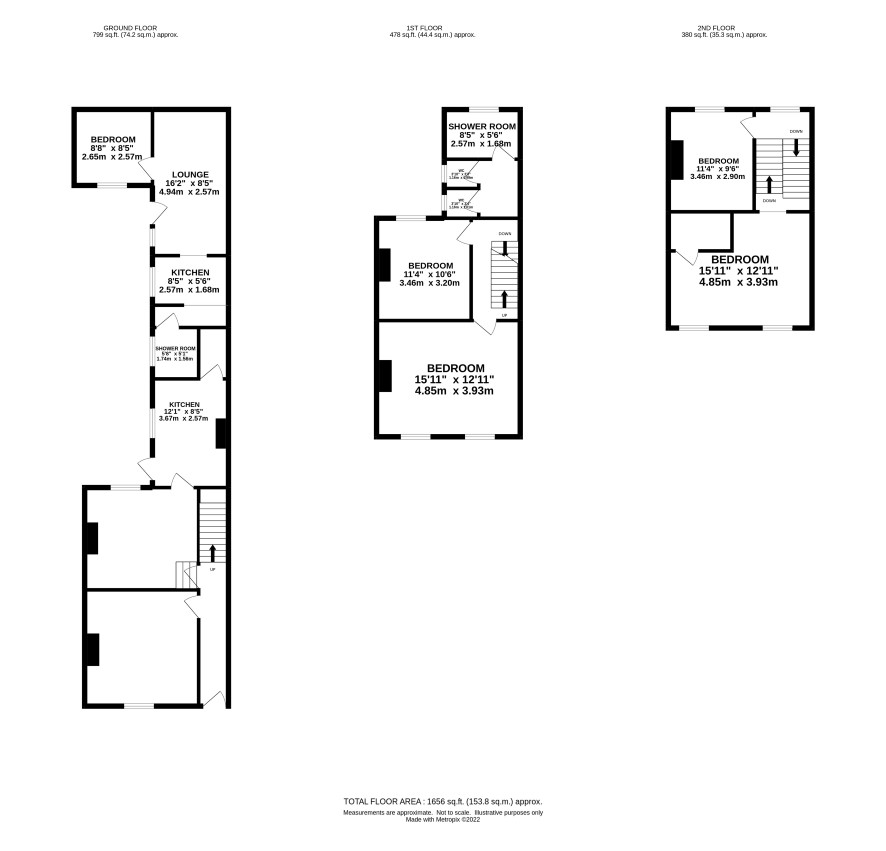Two rooms, shower room, two WC's