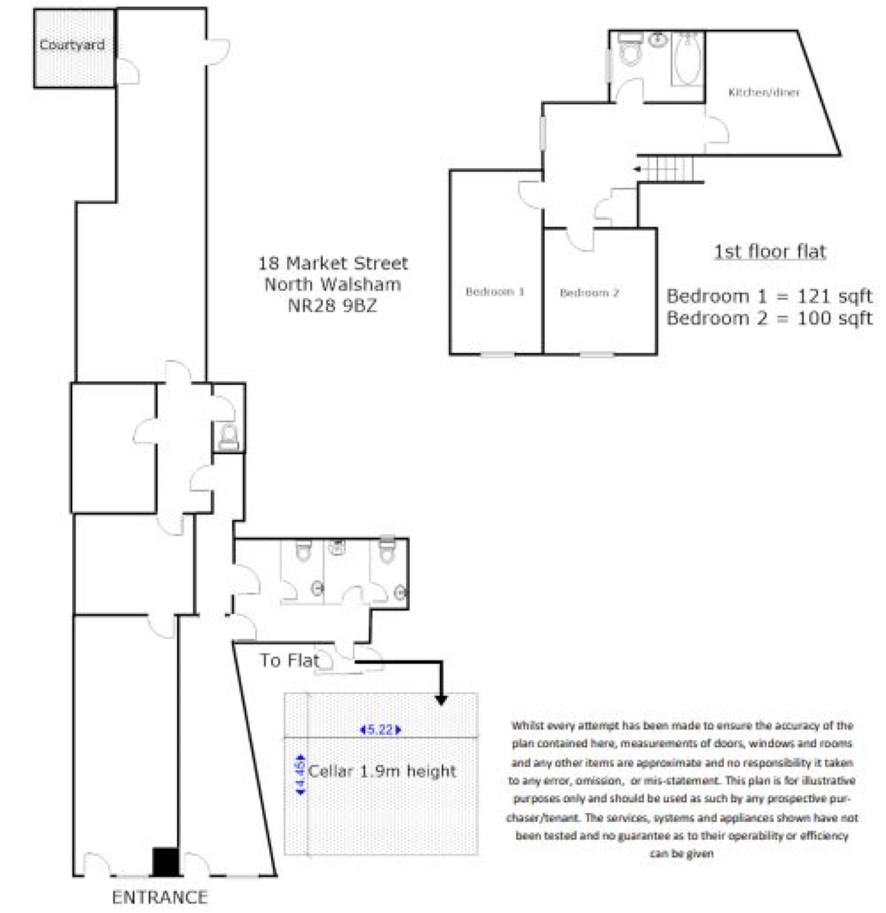 Two shop areas, separate male and female wc, walk in cupboard, bar area, rear games room