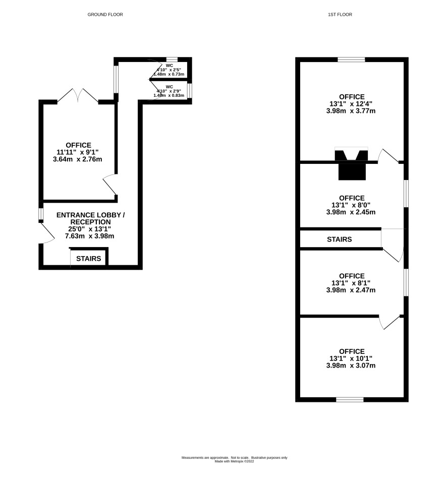 Office: Ground Floor: Entrance hall / waiting room, office, male and female w.c. First Floor: Three offices