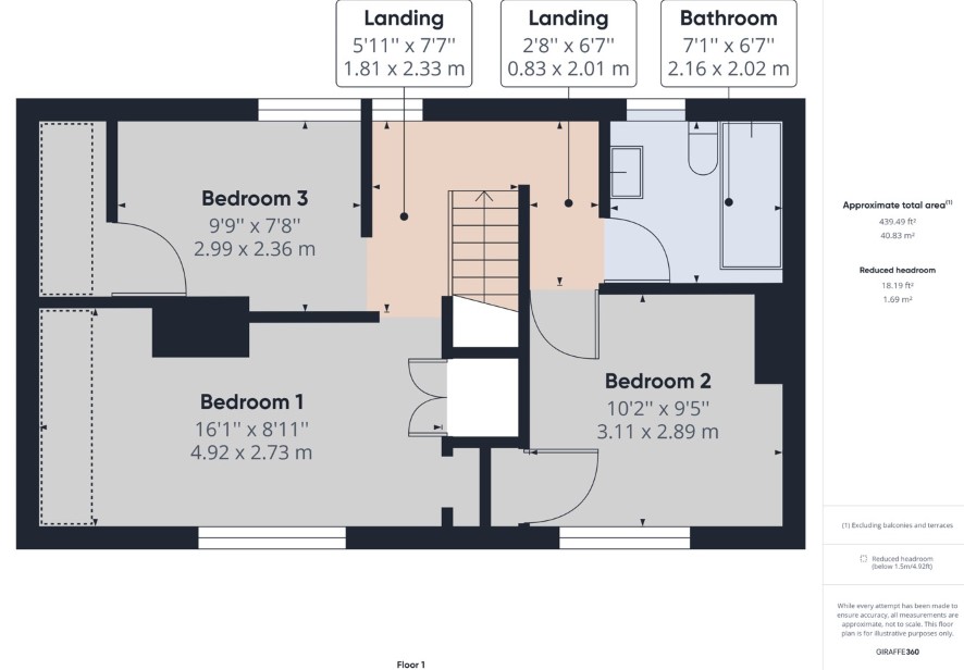 Three bedrooms and a bathroom.