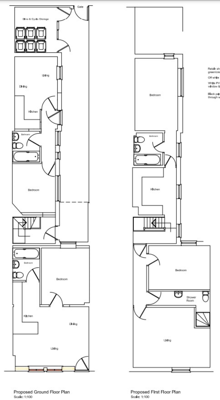 Ground Floor: Flat One with front entrance, living/dining room with kitchen off bedroom, bathroom. Flat Two with rear entrance, hall, lounge/kitchen, bedroom, bathroom, First Floor: Flat Three with rear entrance lobby, first floor landing, lounge, kitchen, bathroom, two bedrooms.