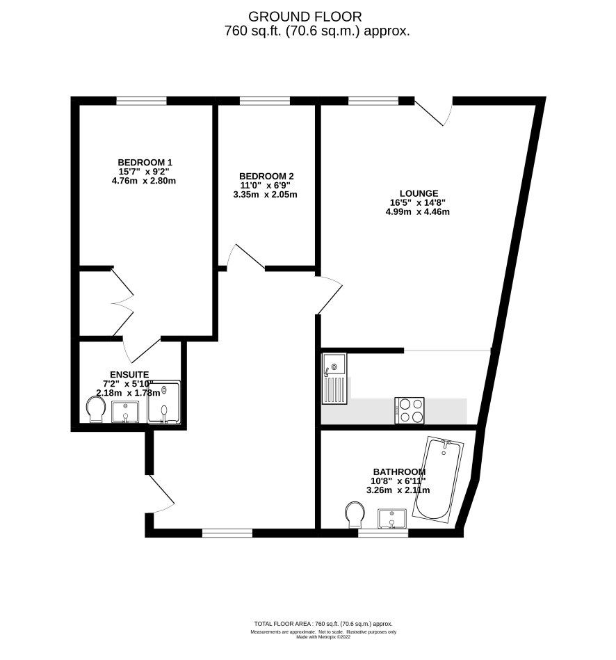 Hall, lounge, kitchen, two bedrooms one with en-suite and a bathroom.