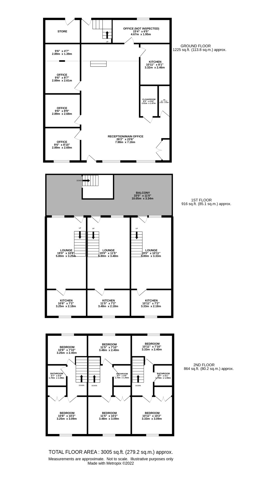 Ground floor: Shop with range of offices, reception areas kitchen and toilet facilities in total 81.9 Sq/m, 881 sq/ft First and Second Floor: Three duplex apartments each with lounge, kitchen, 2 bedrooms and bathroom. Shared roof terrace.