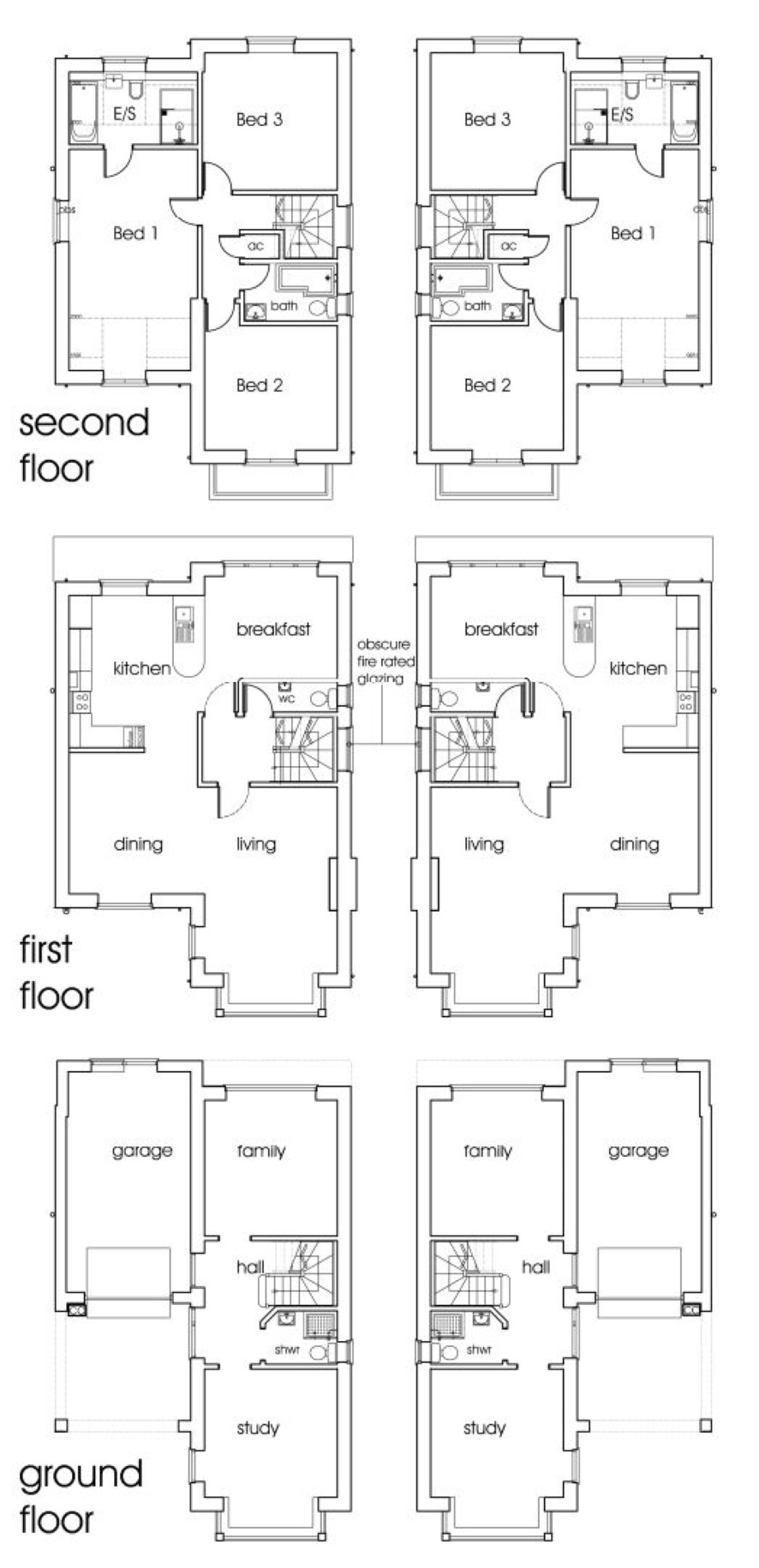 A double building plot with full Planning for two substantial detached three storey houses.