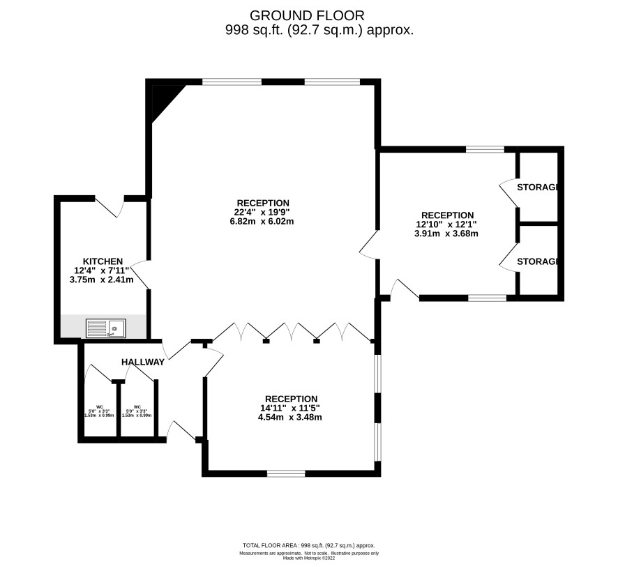 Entrance hall, kitchen, main hall divided with classroom to rear. Rear hall with girls and boys toilets. Additional reception room with door to rear.