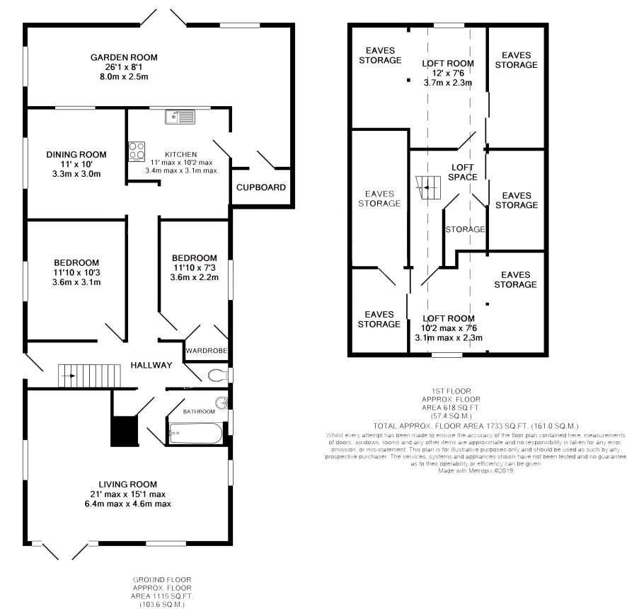 Hallway, living room, dining room, kitchen, garden room, two bedrooms, bathroom, separate w.c. and two loft rooms.