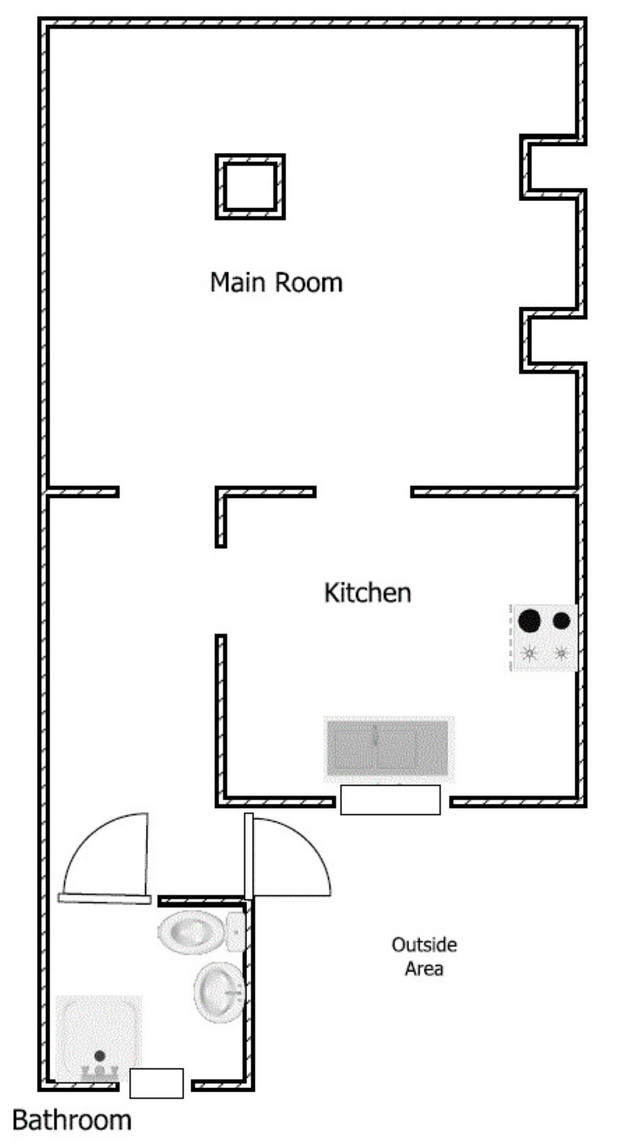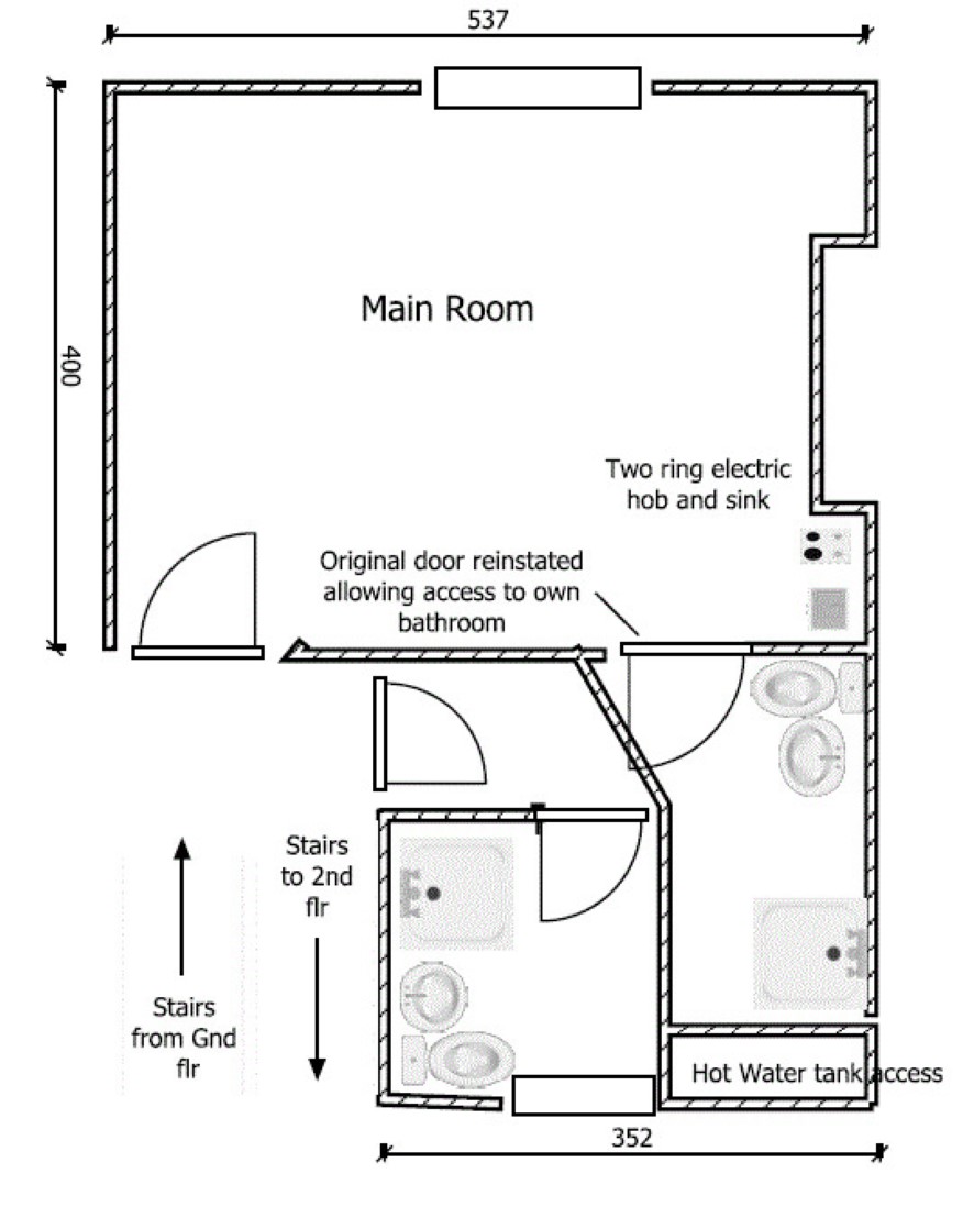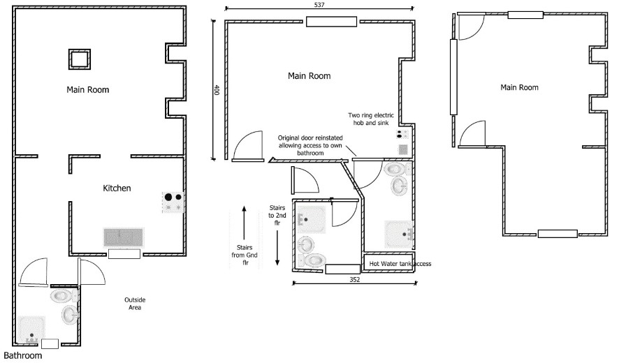 Ground floor retail unit, basement, first and second floor studios and rear courtyard.
