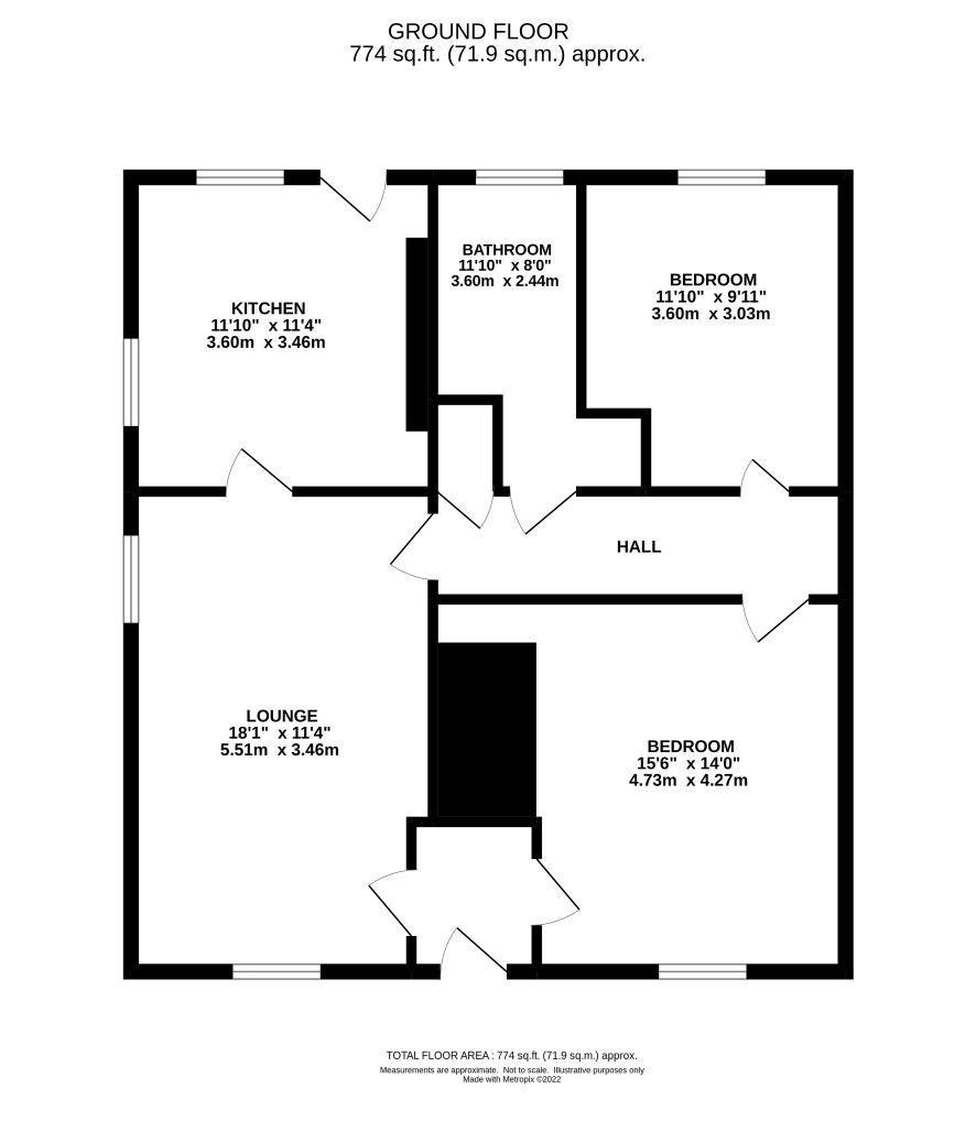 Entrance lobby, lounge, kitchen, two bedrooms, bathroom