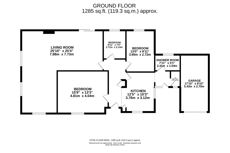 Three bedrooms, bathroom, kitchen and separate w.c.