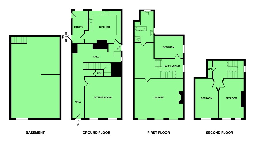 Entrance hall, dining room, study, wc, kitchen, utility room (cellar on lower ground floor)