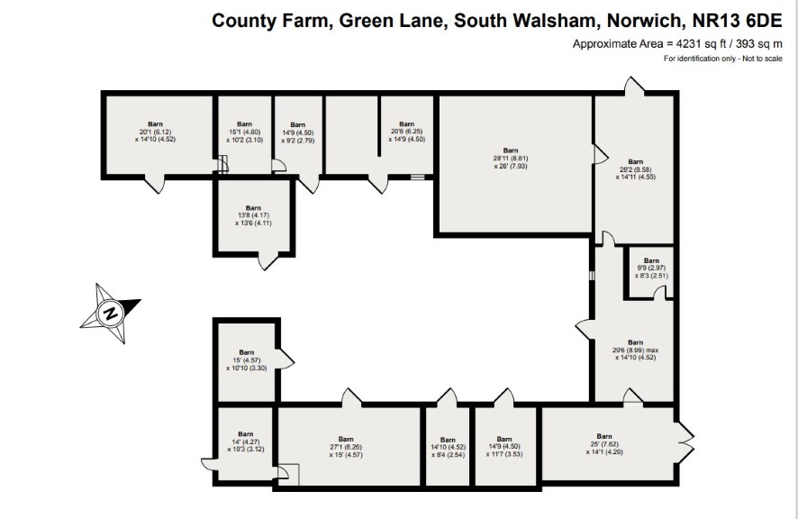 A unique and exciting opportunity to acquire a substantial barn complex situated in a wonderful rural position on the edge of the Norfolk broads. The former cart shed has planning permission for conversion into a four bedroom single storey residential dwelling with associated garaging, swimming pool and gardens. The adjacent house and metal barn are being offered as separate lots. The barn is located around a mile south east of South Walsham and ten miles east of Norwich. An ideal project for a builder / developer.