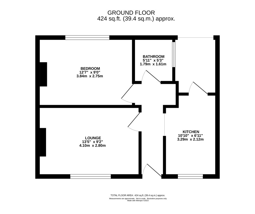 Hall, lounge, kitchen, double bedroom, bathroom.