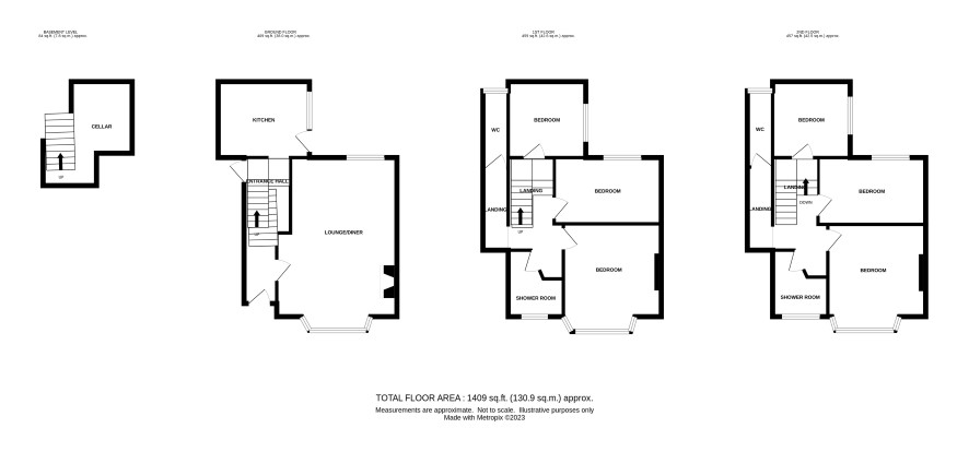 Landing, three bedrooms, wc, shower room