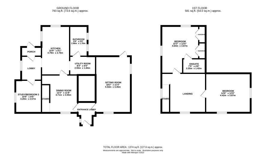 Stairs up to generous landing area leading to two good-sized bedrooms, one with ensuite and fitted wardrobes.