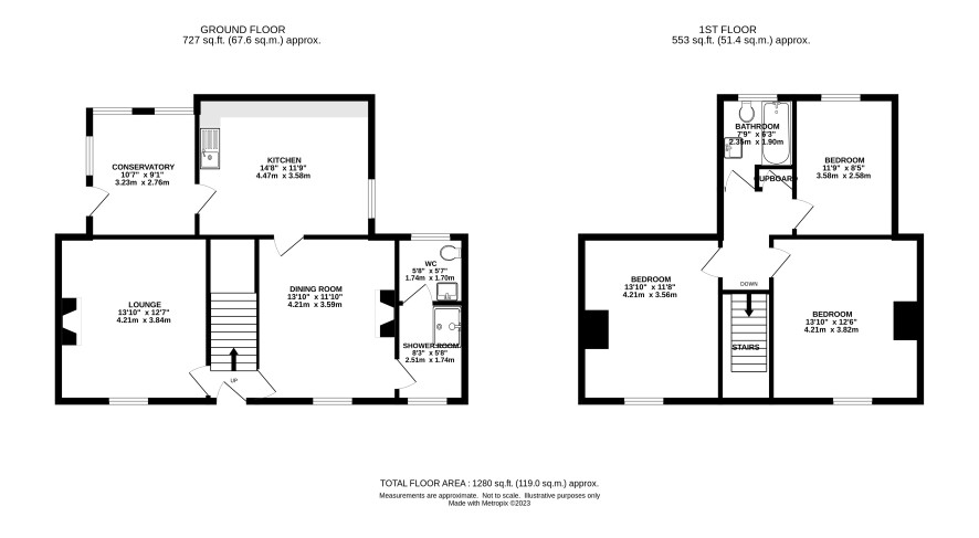 Hall, lounge, dining room, shower room, kitchen and a conservatory.