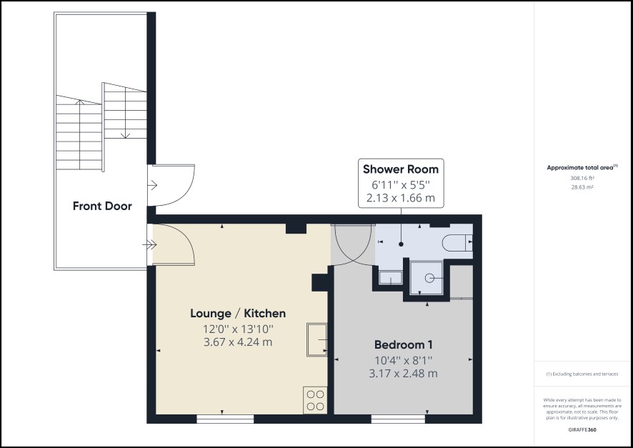 Lounge/kitchen, bedroom, en-suite shower